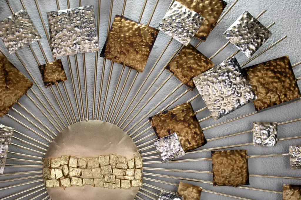 Ein riesiges Wandkunstwerk aus Metall kann in einem winzigen Raum erdrückend wirken, während eine kleine Skulptur in einem großen Raum vielleicht unbemerkt bleibt. Messen Sie Ihre Wände aus und machen Sie sich vor dem Kauf ein Bild der Platzverhältnisse.